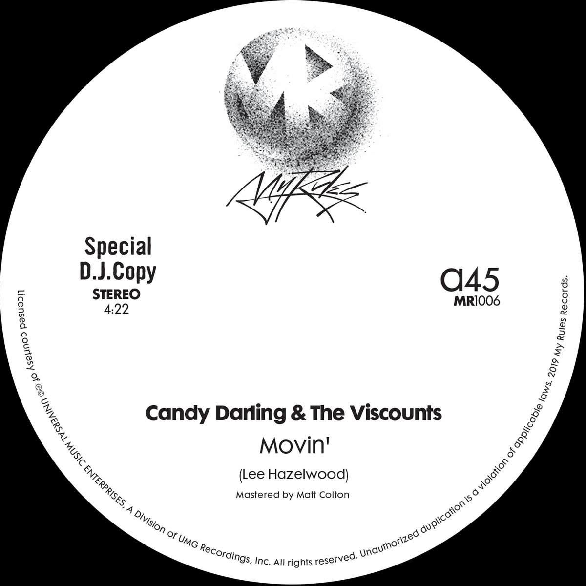 Limited 12" vinyl test press of the highly sought after cosmic disco bomb Movin’ by Belgian group Candy Darling & The Viscounts. The A side features the original mix, a disco cover of a Lee Hazelwood surf song. On the flip you’ll find My Rules label boss Justin Van Der Volgen’s edit. Fully licensed. Vinyl only!